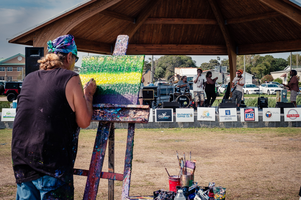 Oak Island had a Solstice by the Sea Festival today with a lot of different things going on all day. The live music was great and this guy made me think of a synesthetes. Which is a person that sees music as color. He just kept painting while the bands were playing.