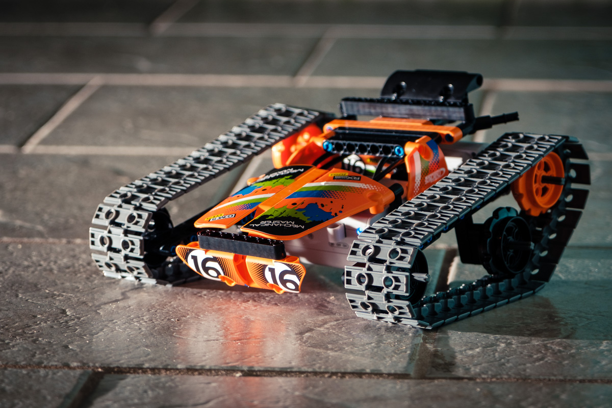My youngest made this cool looking tracked race car. It’s remote control and can pop wheels, or tracks. What ever you call a track vehicle that pop the front end up off the ground.