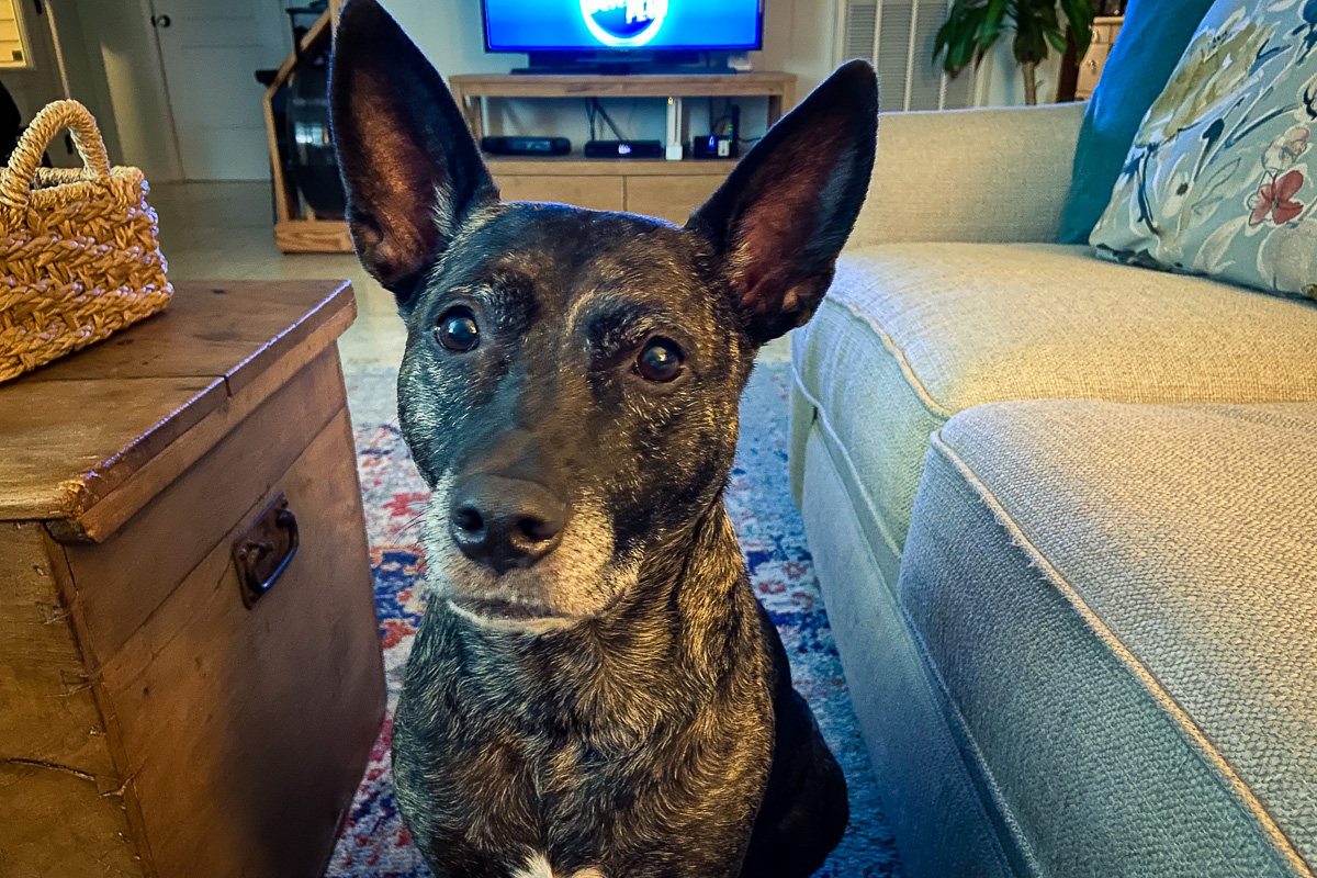 Whatcha eating? This is Piper waiting for her part of my snack.