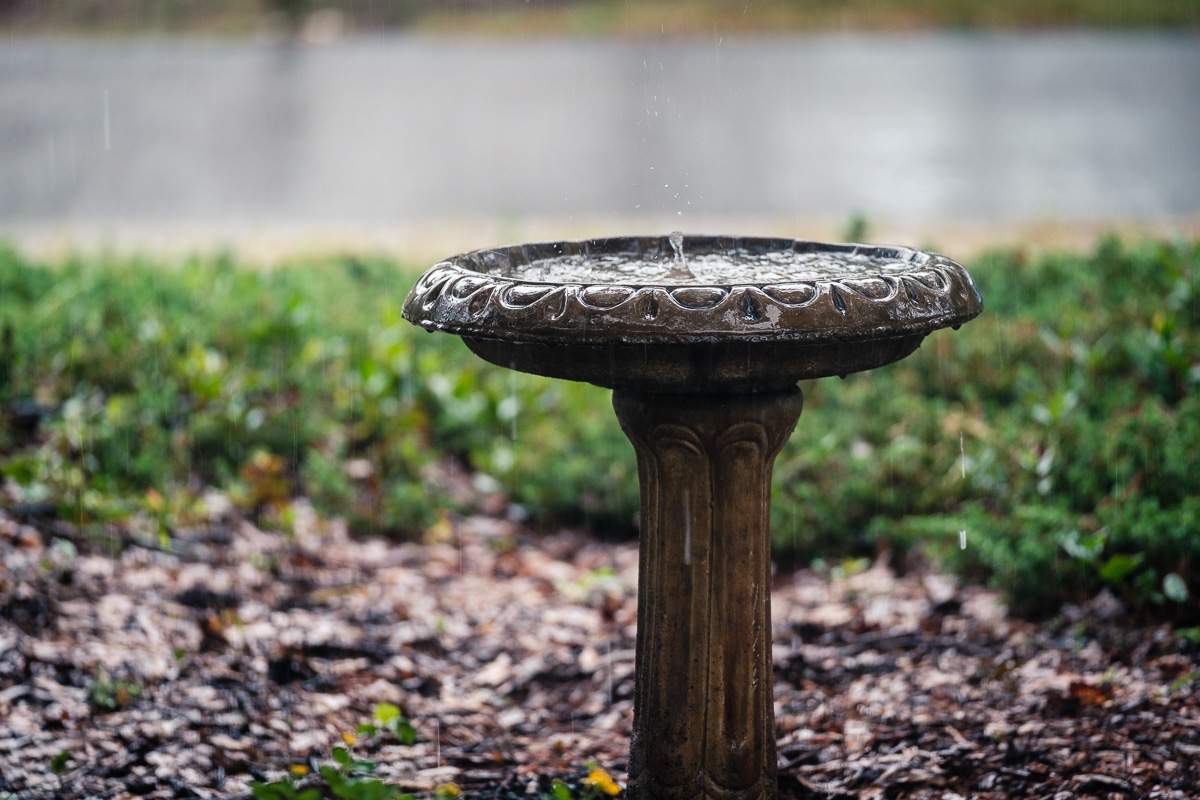Catching drops on a very rainy day.
