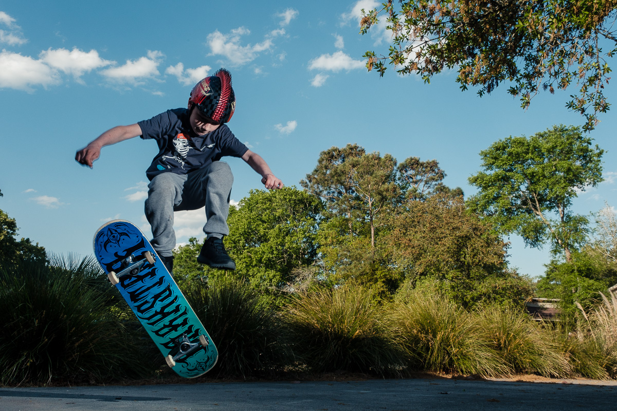My youngest is practicing his skateboard tricks in the driveway. He couldn’t tell the name of the trick he was working on, but it ended up looking cool.